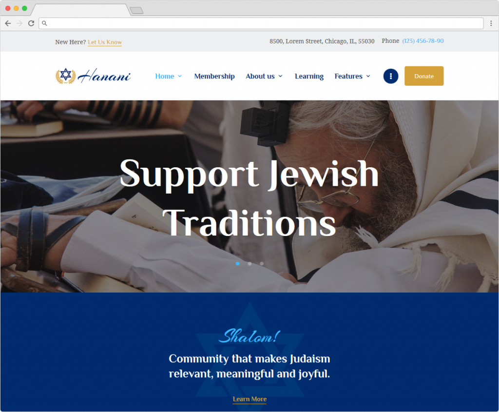 Hanani, WordPress Theme for Jewish Community Center