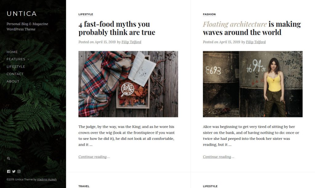 Untica, Personal Blog and Magazine WordPress Theme