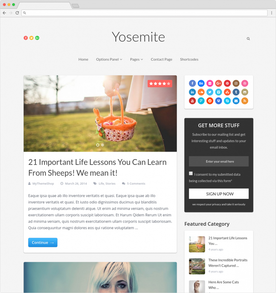 Yosemite Powerful WordPress Parallax Personal Blog Template